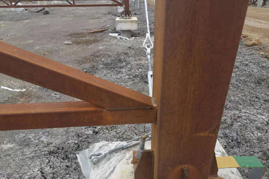 目前公司正在建設中的張北清潔能源電站項目局部拍攝照片,照片中的耐候鋼為在自然環境下腐蝕2個月左右的效果。